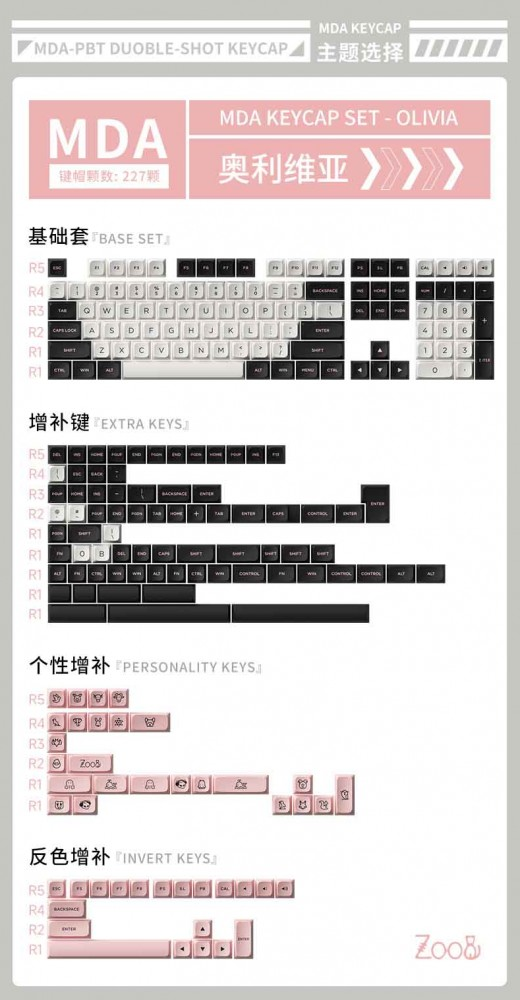 227 nút trong AKKO Keycap set – Olivia (MDA profile)