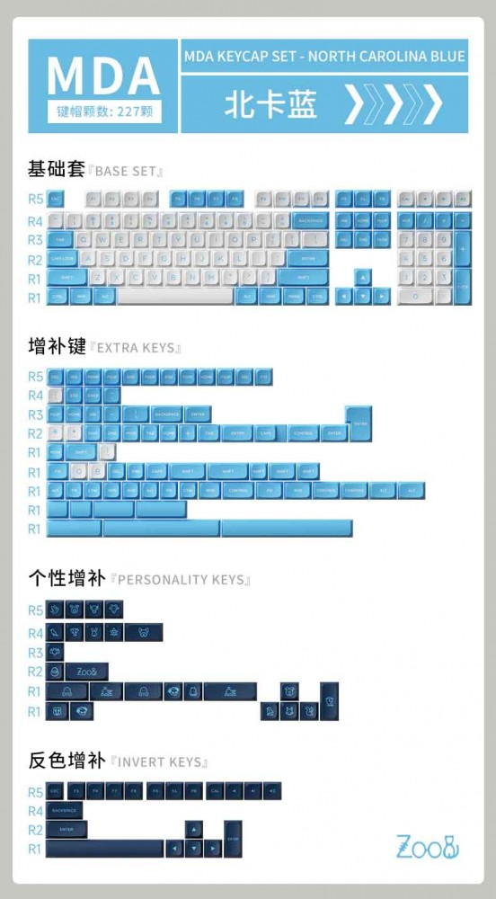 227 nút trong AKKO Keycap set – UNC Blue (MDA profile)