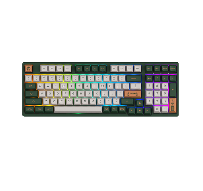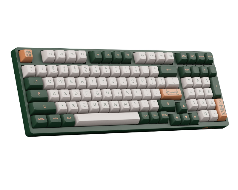 AKKO 3098S World Tour London với layout 98 phím là phiên bản rút gọn của bàn phím Full-size. Bàn phím này vẫn có cụm phím điều hướng và dãy numpad nhưng được thiết kế sát gần nhau; phím mũi tên được đặt nằm ngày dưới nút Enter và nút Numpad ép sát vào cụm phím mũi tên. Điều này đã tạo nên một mẫu bàn phím có vẻ ngoài độc đáo, đầy đủ phím nhưng chiếm ít diện tích hơn.