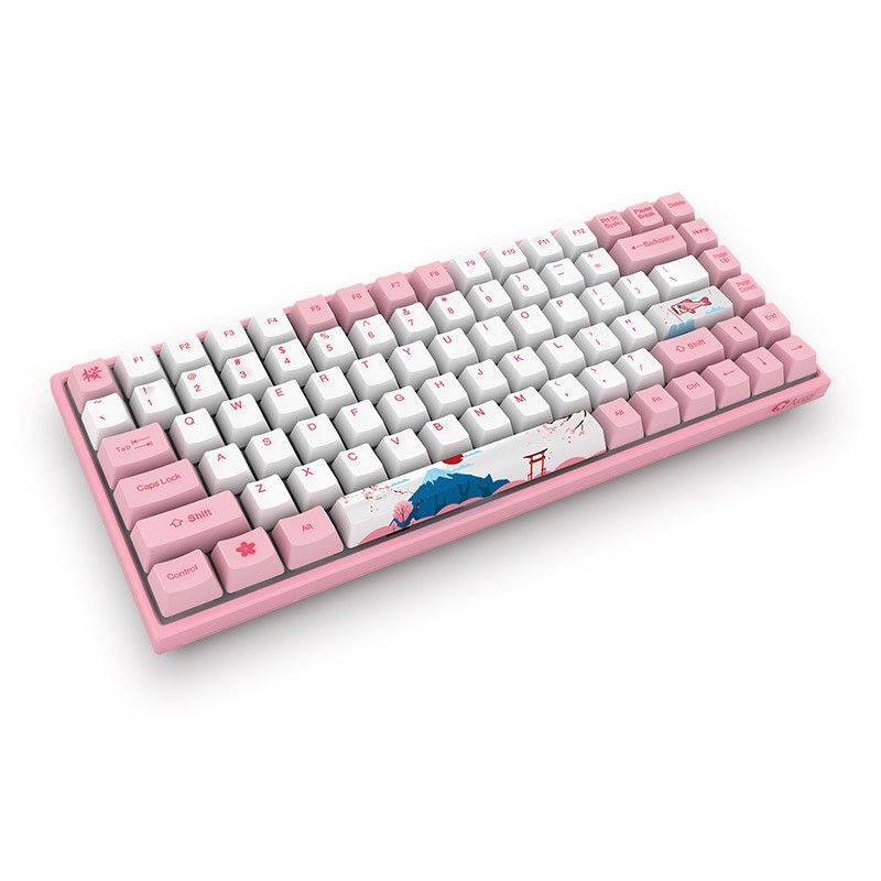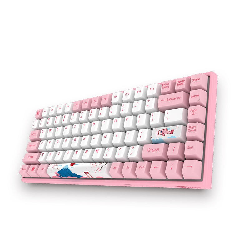 Keycap custom lấy chủ đạo là màu hồng trắng cùng hoa anh đào, núi Phú sĩ, cá chép và mèo may mắn (biểu tượng của Nhật Bản)