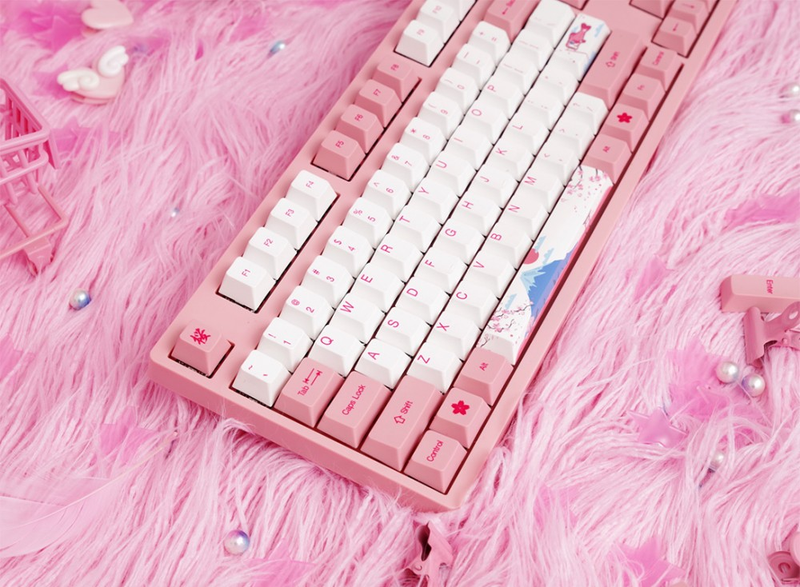 Keycap custom lấy chủ đạo là màu hoa anh đào, núi Phú sĩ, cá chép và mèo may mắn (biểu tượng của Nhật Bản)