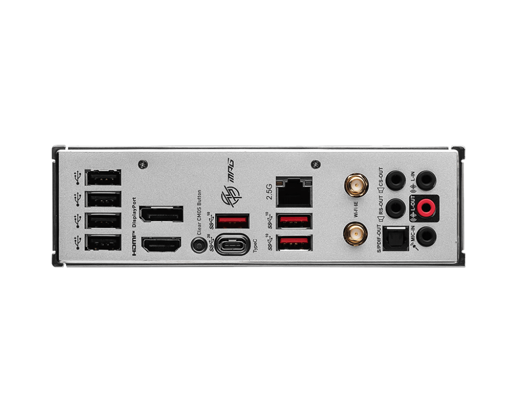 | Internal IO | 1x Power Connector(ATX_PWR) 2x Power Connector(CPU_PWR) 1x CPU Fan 1x Pump Fan 4x System Fan 2x Front Panel (JFP) 1x Chassis Intrusion (JCI) 1x Front Audio (JAUD) 1x TBT connector (JTBT, supports RTD3) 1x Tuning Controller connector(JDASH) 2x Addressable V2 RGB LED connector (JARGB_V2) 1x RGB LED connector(JRGB) 1x TPM pin header(Support TPM 2.0) 1x USB4 card connector (JTBT_U4_1, supports RTD3) 4x USB 2.0 ports 2x USB 5Gbps Type A ports 1x USB 10Gbps Type C ports |
